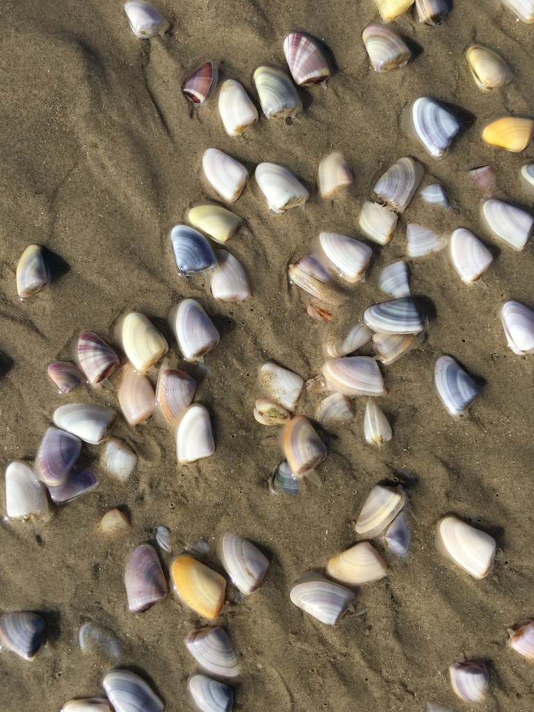Living in Lubbock, TX, I can’t say that I get to explore the coast as much I would like. At Mustang Island State Park, small, brightly colored, burrowing Coquinas clams sunk into the sand with the help of the tide. They tread water until the conditions are right to bury themselves. With each individual wave, a whole bed of clams can appear or disappear. I learned to scrape my foot along the sand to uncover those clams freshly buried. For the first time, I was able to see live clams in the ocean. What a fun day at the beach!